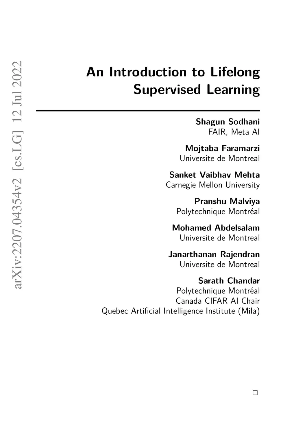 An Introduction to Lifelong Supervised Learning