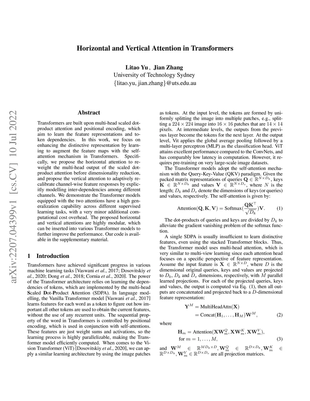 Horizontal and Vertical Attention in Transformers