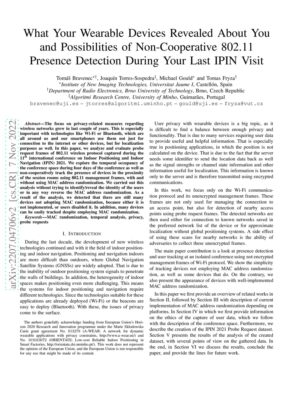 The focus on privacy-related measures regarding wireless networks grew in last couple of years. This is especially important with technologies like Wi-Fi or Bluetooth, which are all around us and our smartphones use them not just for connection to the internet or other devices, but for localization purposes as well. In this paper, we analyze and evaluate probe request frames of 802.11 wireless protocol captured during the 11th international conference on Indoor Positioning and Indoor Navigation (IPIN) 2021. We explore the temporal occupancy of the conference space during four days of the conference as well as non-cooperatively track the presence of devices in the proximity of the session rooms using 802.11 management frames, with and without using MAC address randomization. We carried out this analysis without trying to identify/reveal the identity of the users or in any way reverse the MAC address randomization. As a result of the analysis, we detected that there are still many devices not adopting MAC randomization, because either it is not implemented, or users disabled it. In addition, many devices can be easily tracked despite employing MAC randomization.
