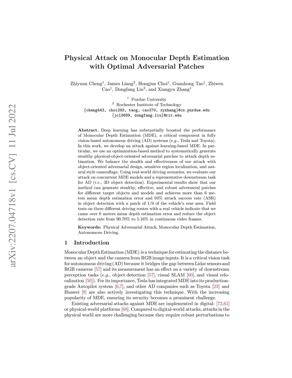 Physical Attack on Monocular Depth Estimation with Optimal Adversarial