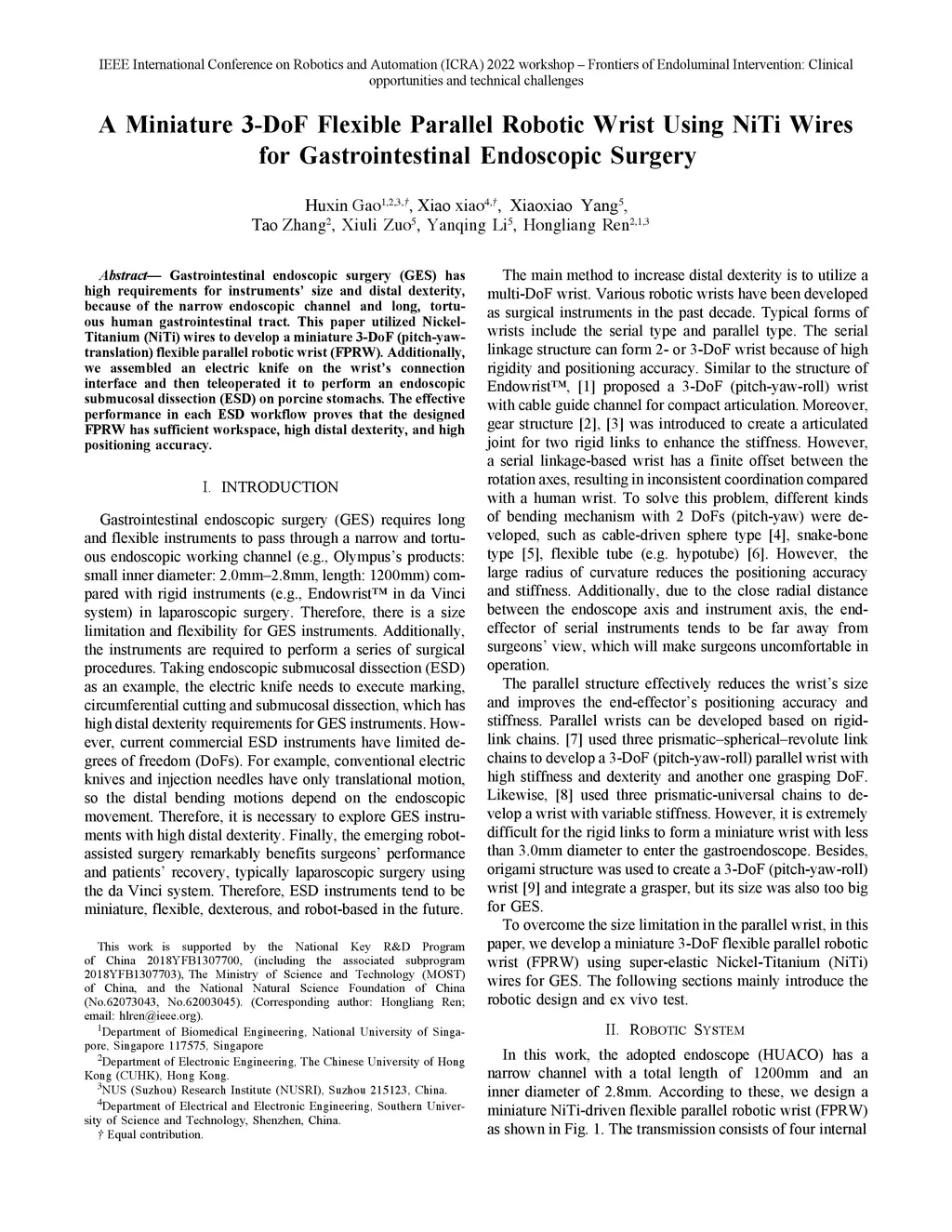 A Miniature 3-DoF Flexible Parallel Robotic Wrist Using NiTi Wires for