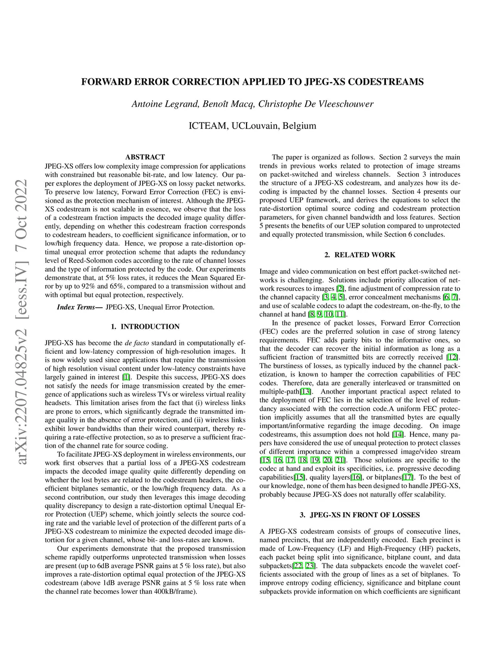 JPEG-XS offers low complexity image compression for applications with constrained but reasonable bit-rate, and low latency. Our paper explores the deployment of JPEG-XS on lossy packet networks. To preserve low latency, Forward Error Correction (FEC) is envisioned as the protection mechanism of interest. Despite the JPEG-XS codestream is not scalable in essence, we observe that the loss of a codestream fraction impacts the decoded image quality differently, depending on whether this codestream fraction corresponds to codestream headers, to coefficients significance information, or to low/high frequency data, respectively. Hence, we propose a rate-distortion optimal unequal error protection scheme that adapts the redundancy level of Reed-Solomon codes according to the rate of channel losses and the type of information protected by the code. Our experiments demonstrate that, at 5% loss rates, it reduces the Mean Squared Error by up to 92% and 65%, compared to a transmission without and with optimal but equal protection, respectively.
