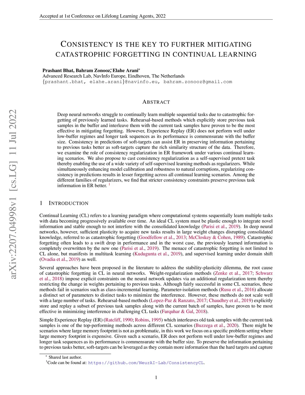 Consistency is the key to further mitigating catastrophic forgetting in