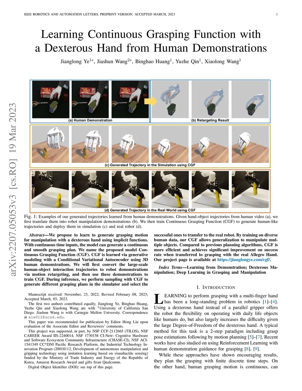 Learning Continuous Grasping Function with a Dexterous Hand from Human