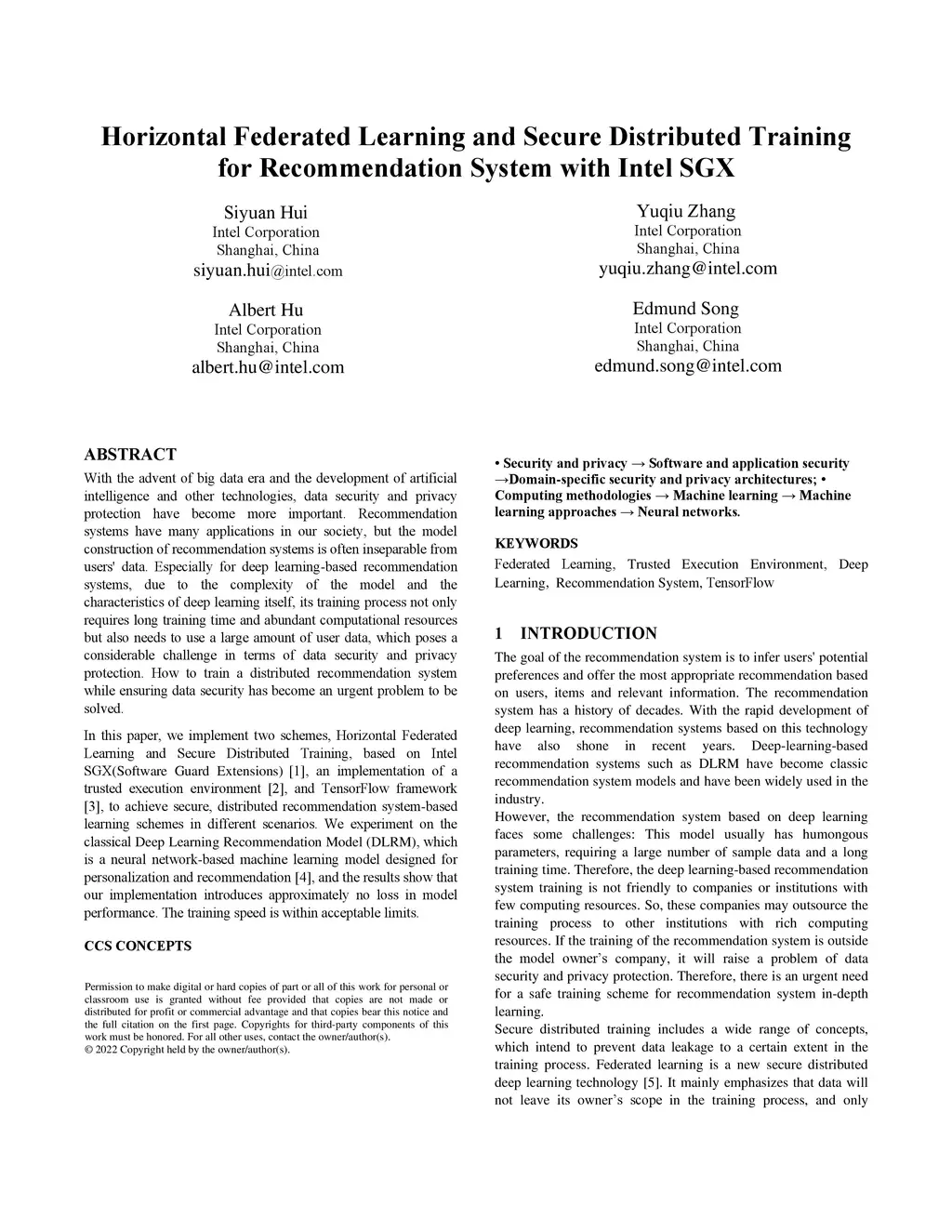 Recommendation System with Intel SGX