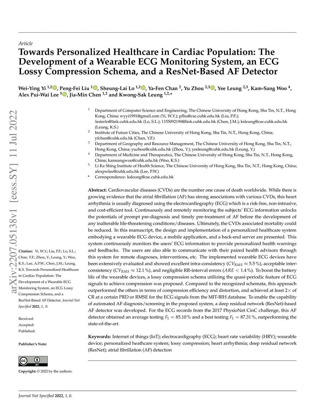 Cardiovascular diseases (CVDs) are the number one cause of death worldwide. While there is growing evidence that the atrial fibrillation (AF) has strong associations with various CVDs, this heart arrhythmia is usually diagnosed using electrocardiography (ECG) which is a risk-free, non-intrusive, and cost-efficient tool. Continuously and remotely monitoring the subjects' ECG information unlocks the potentials of prompt pre-diagnosis and timely pre-treatment of AF before the development of any life-threatening conditions/diseases. Ultimately, the CVDs associated mortality could be reduced. In this manuscript, the design and implementation of a personalized healthcare system embodying a wearable ECG device, a mobile application, and a back-end server are presented. This system continuously monitors the users' ECG information to provide personalized health warnings/feedbacks. The users are able to communicate with their paired health advisors through this system for remote diagnoses, interventions, etc. The implemented wearable ECG devices have been evaluated and showed excellent intra-consistency (CVRMS=5.5%), acceptable inter-consistency (CVRMS=12.1%), and negligible RR-interval errors (ARE<1.4%). To boost the battery life of the wearable devices, a lossy compression schema utilizing the quasi-periodic feature of ECG signals to achieve compression was proposed. Compared to the recognized schemata, it outperformed the others in terms of compression efficiency and distortion, and achieved at least 2x of CR at a certain PRD or RMSE for ECG signals from the MIT-BIH database. To enable automated AF diagnosis/screening in the proposed system, a ResNet-based AF detector was developed. For the ECG records from the 2017 PhysioNet CinC challenge, this AF detector obtained an average testing F1=85.10% and a best testing F1=87.31%, outperforming the state-of-the-art.