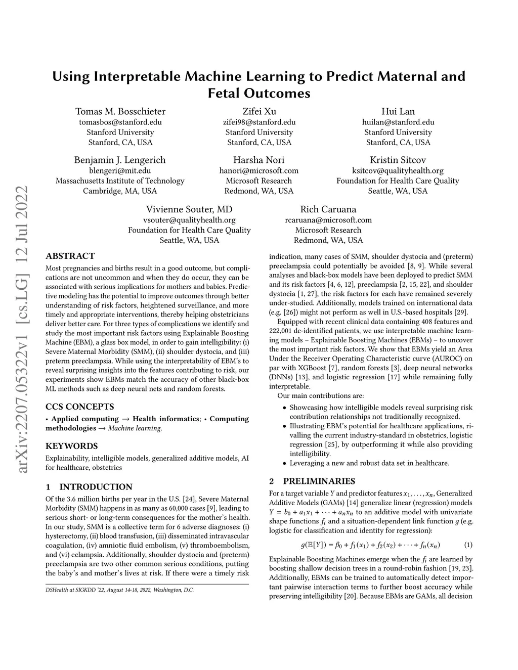 Using Interpretable Machine Learning to Predict Maternal and Fetal