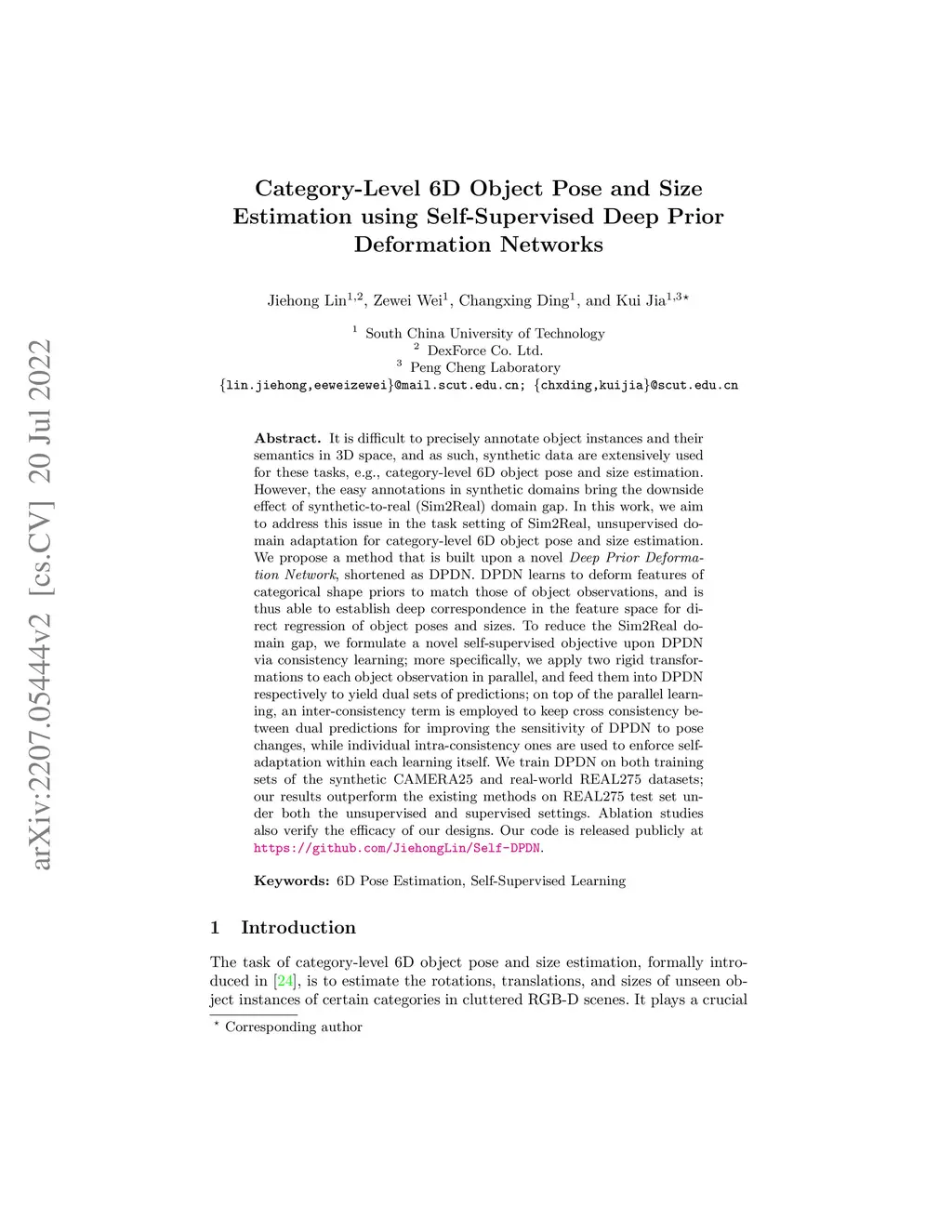 Category-Level 6D Object Pose and Size Estimation using Self-Supervised