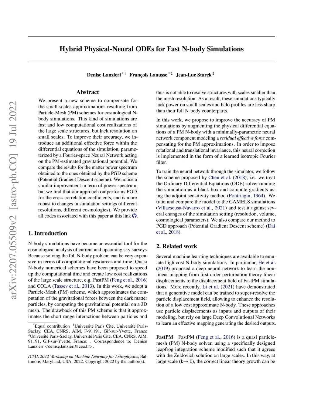 Hybrid Physical-Neural ODEs for Fast N-body Simulations