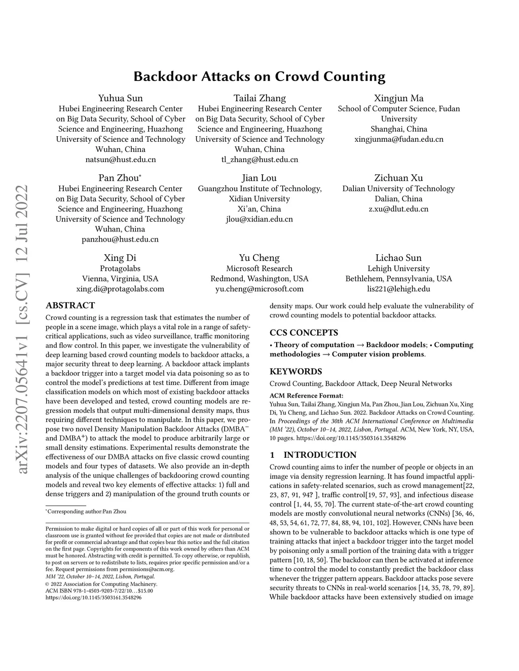 Backdoor Attacks on Crowd Counting