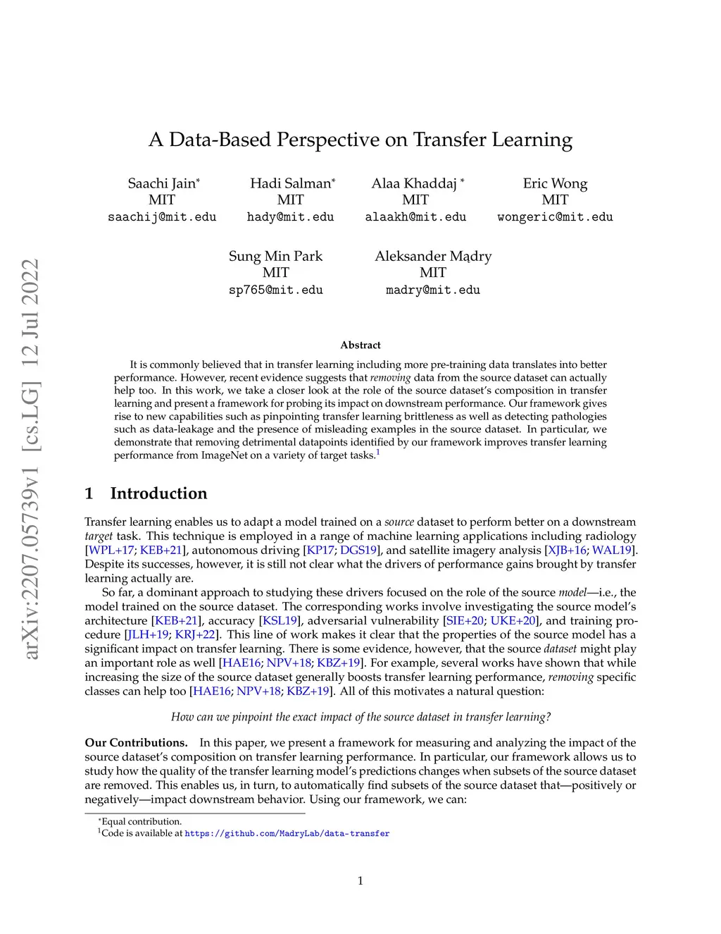A Data-Based Perspective on Transfer Learning