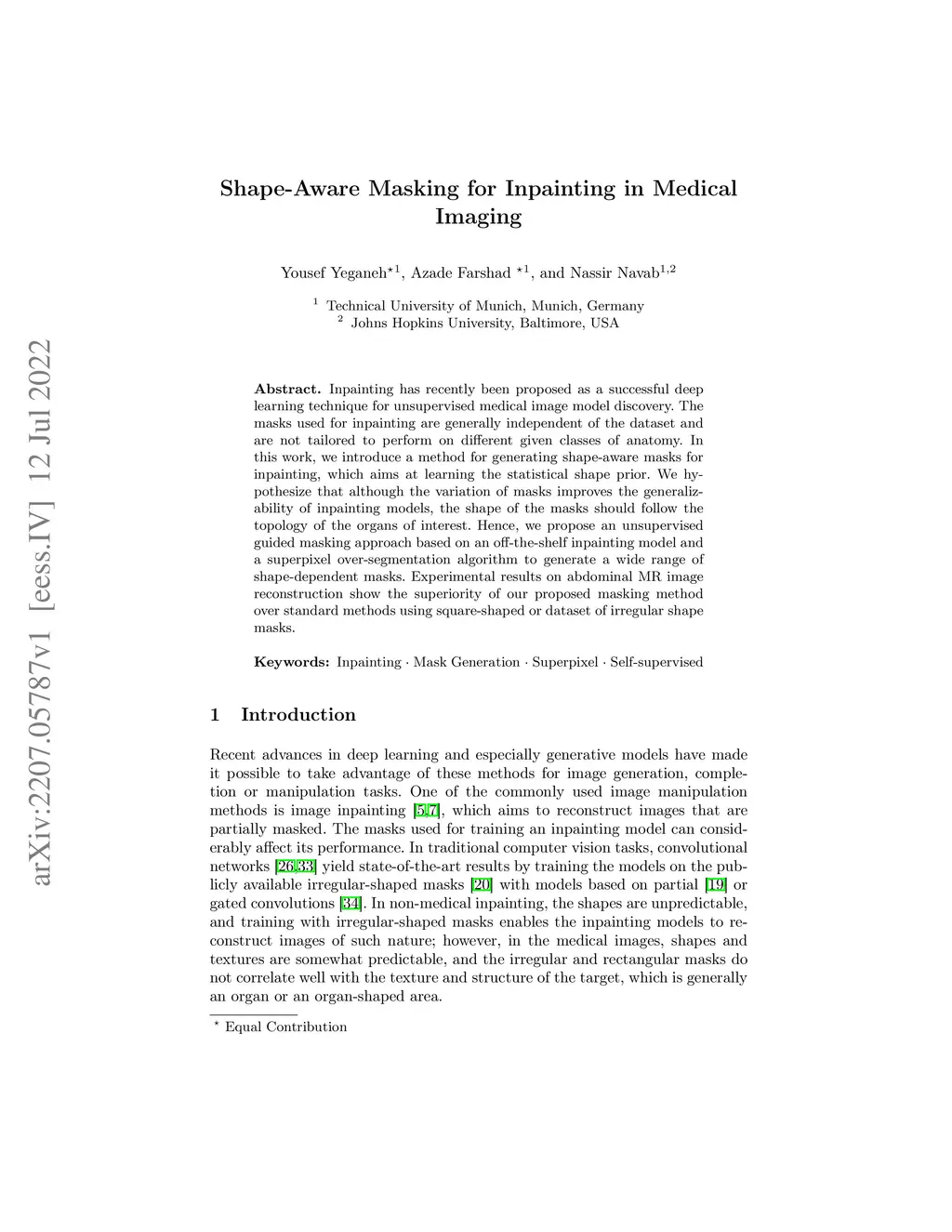 Shape-Aware Masking for Inpainting in Medical Imaging