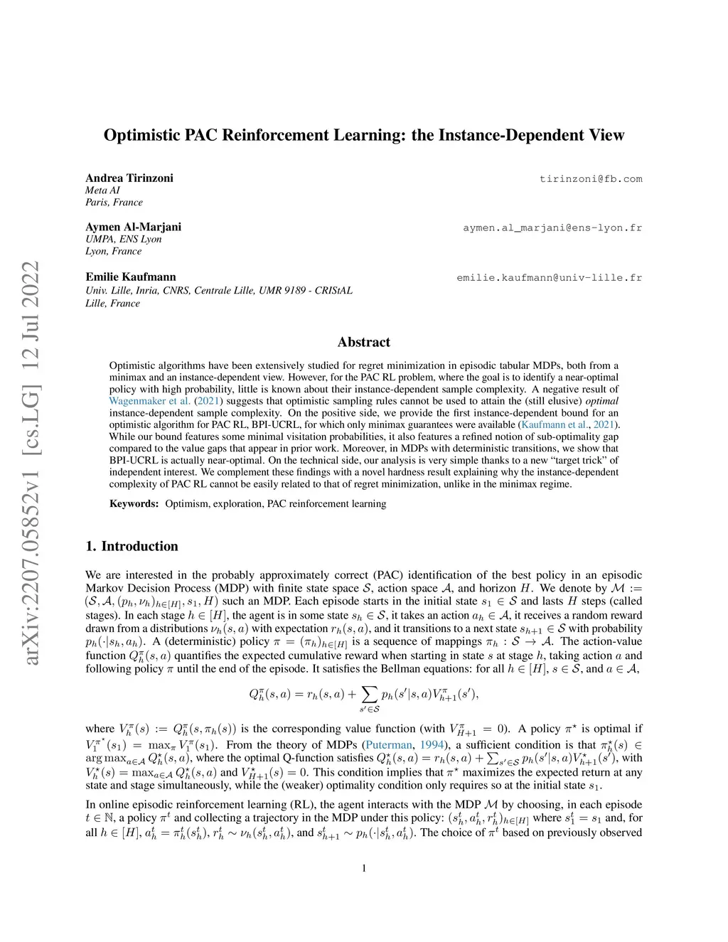 Optimistic PAC Reinforcement Learning: the Instance-Dependent View