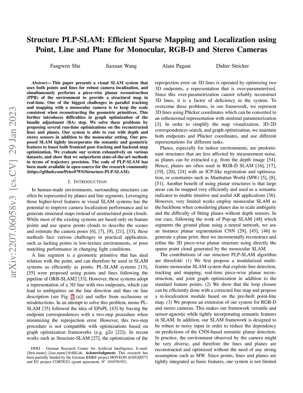 Structure PLP-SLAM: Efficient Sparse Mapping and Localization using