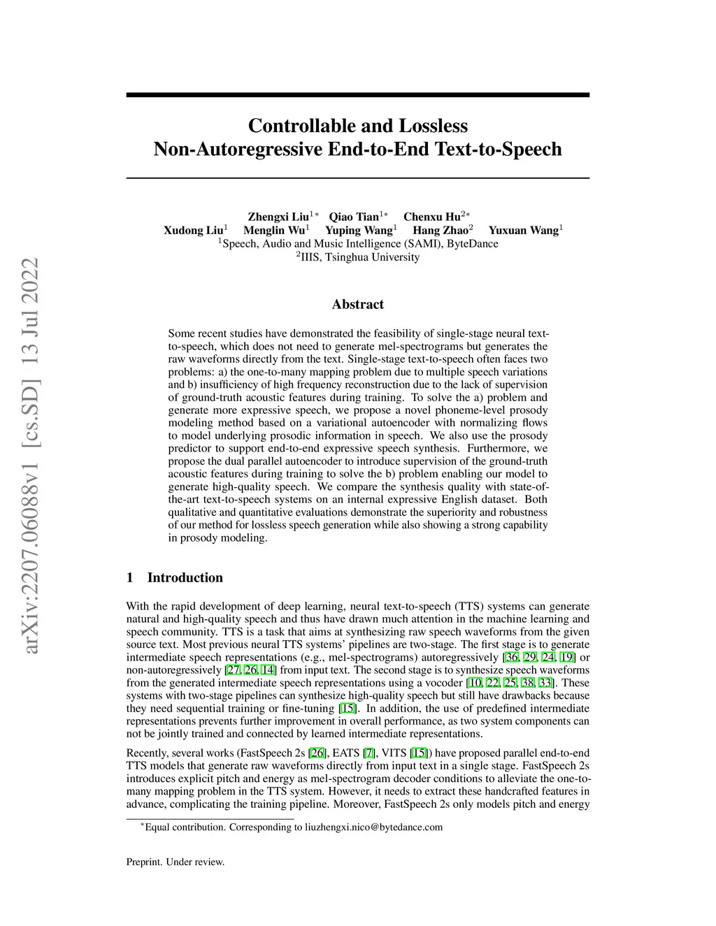 Controllable and Lossless Non-Autoregressive End-to-End Text-to-Speech