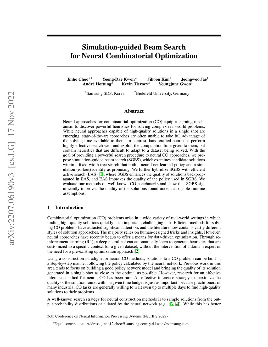 Simulation-guided Beam Search for Neural Combinatorial Optimization