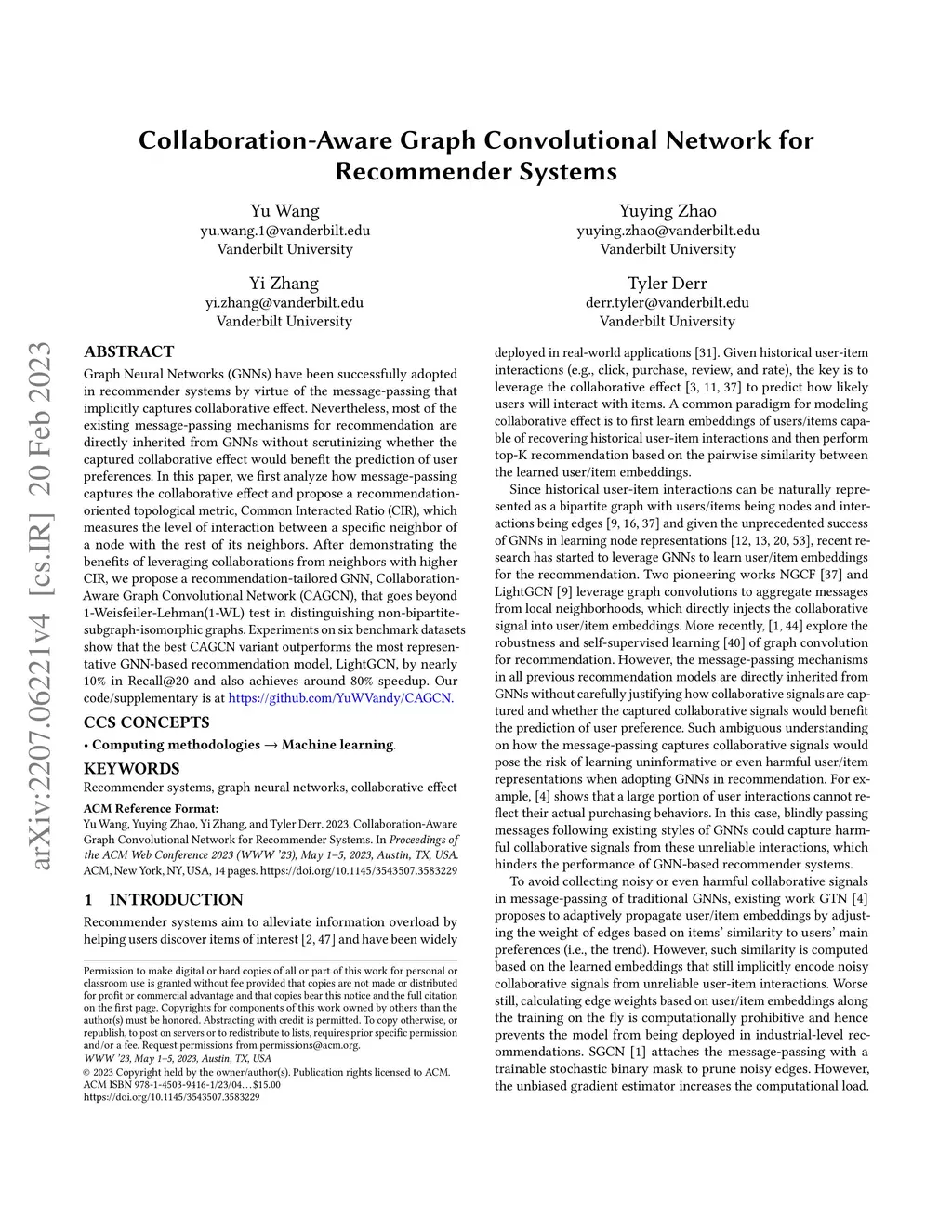 Graph Neural Networks (GNNs) have been successfully adopted in recommender systems by virtue of the message-passing that implicitly captures collaborative effect. Nevertheless, most of the existing message-passing mechanisms for recommendation are directly inherited from GNNs without scrutinizing whether the captured collaborative effect would benefit the prediction of user preferences. In this paper, we first analyze how message-passing captures the collaborative effect and propose a recommendation-oriented topological metric, Common Interacted Ratio (CIR), which measures the level of interaction between a specific neighbor of a node with the rest of its neighbors. After demonstrating the benefits of leveraging collaborations from neighbors with higher CIR, we propose a recommendation-tailored GNN, Collaboration-Aware Graph Convolutional Network (CAGCN), that goes beyond 1-Weisfeiler-Lehman(1-WL) test in distinguishing non-bipartite-subgraph-isomorphic graphs. Experiments on six benchmark datasets show that the best CAGCN variant outperforms the most representative GNN-based recommendation model, LightGCN, by nearly 10% in Recall@20 and also achieves around 80% speedup. Our code is publicly available at https://github.com/YuWVandy/CAGCN.