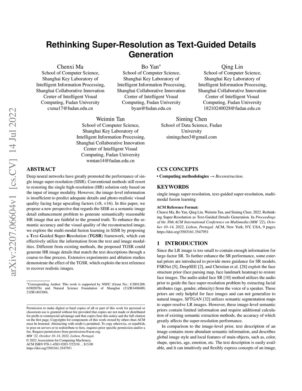 Deep neural networks have greatly promoted the performance of single image super-resolution (SISR). Conventional methods still resort to restoring the single high-resolution (HR) solution only based on the input of image modality. However, the image-level information is insufficient to predict adequate details and photo-realistic visual quality facing large upscaling factors (x8, x16). In this paper, we propose a new perspective that regards the SISR as a semantic image detail enhancement problem to generate semantically reasonable HR image that are faithful to the ground truth. To enhance the semantic accuracy and the visual quality of the reconstructed image, we explore the multi-modal fusion learning in SISR by proposing a Text-Guided Super-Resolution (TGSR) framework, which can effectively utilize the information from the text and image modalities. Different from existing methods, the proposed TGSR could generate HR image details that match the text descriptions through a coarse-to-fine process. Extensive experiments and ablation studies demonstrate the effect of the TGSR, which exploits the text reference to recover realistic images.