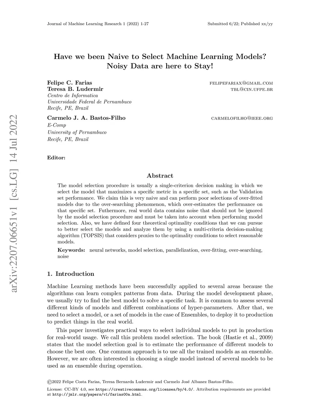 The model selection procedure is usually a single-criterion decision making in which we select the model that maximizes a specific metric in a specific set, such as the Validation set performance. We claim this is very naive and can perform poor selections of over-fitted models due to the over-searching phenomenon, which over-estimates the performance on that specific set. Futhermore, real world data contains noise that should not be ignored by the model selection procedure and must be taken into account when performing model selection. Also, we have defined four theoretical optimality conditions that we can pursue to better select the models and analyze them by using a multi-criteria decision-making algorithm (TOPSIS) that considers proxies to the optimality conditions to select reasonable models.