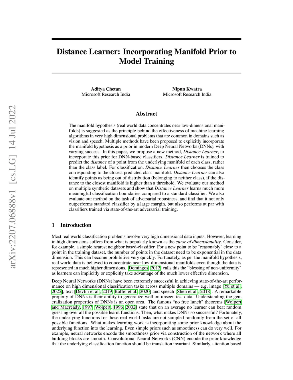 Distance Learner: Incorporating Manifold Prior to Model Training