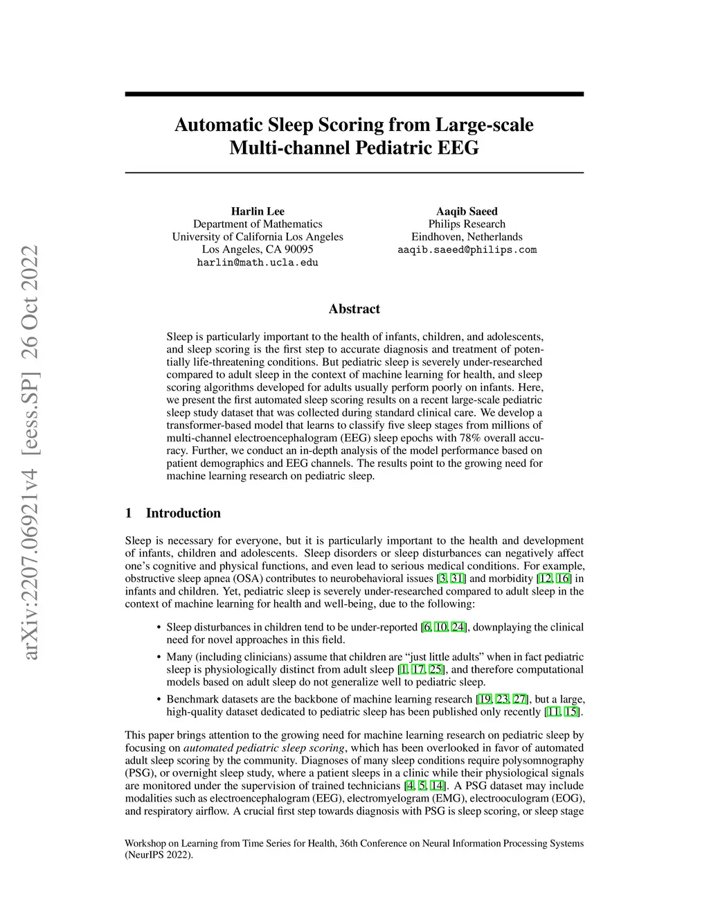 Automatic Sleep Scoring from Large-scale Multi-channel Pediatric EEG