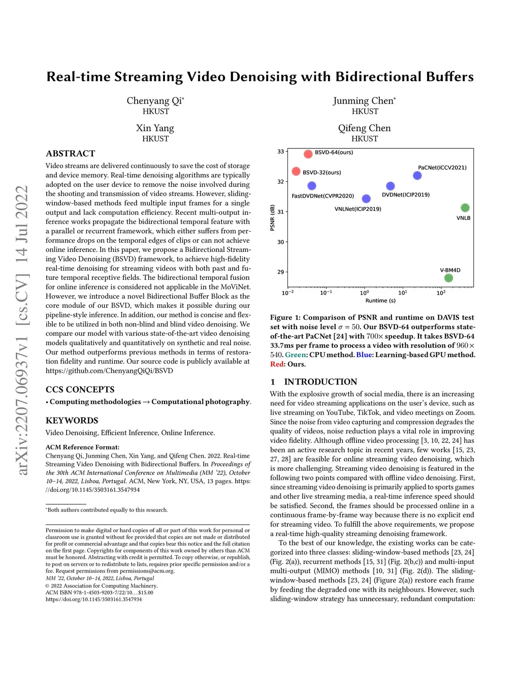 Video streams are delivered continuously to save the cost of storage and device memory. Real-time denoising algorithms are typically adopted on the user device to remove the noise involved during the shooting and transmission of video streams. However, sliding-window-based methods feed multiple input frames for a single output and lack computation efficiency. Recent multi-output inference works propagate the bidirectional temporal feature with a parallel or recurrent framework, which either suffers from performance drops on the temporal edges of clips or can not achieve online inference. In this paper, we propose a Bidirectional Streaming Video Denoising (BSVD) framework, to achieve high-fidelity real-time denoising for streaming videos with both past and future temporal receptive fields. The bidirectional temporal fusion for online inference is considered not applicable in the MoViNet. However, we introduce a novel Bidirectional Buffer Block as the core module of our BSVD, which makes it possible during our pipeline-style inference. In addition, our method is concise and flexible to be utilized in both non-blind and blind video denoising. We compare our model with various state-of-the-art video denoising models qualitatively and quantitatively on synthetic and real noise. Our method outperforms previous methods in terms of restoration fidelity and runtime. Our source code is publicly available at https://github.com/ChenyangQiQi/BSVD