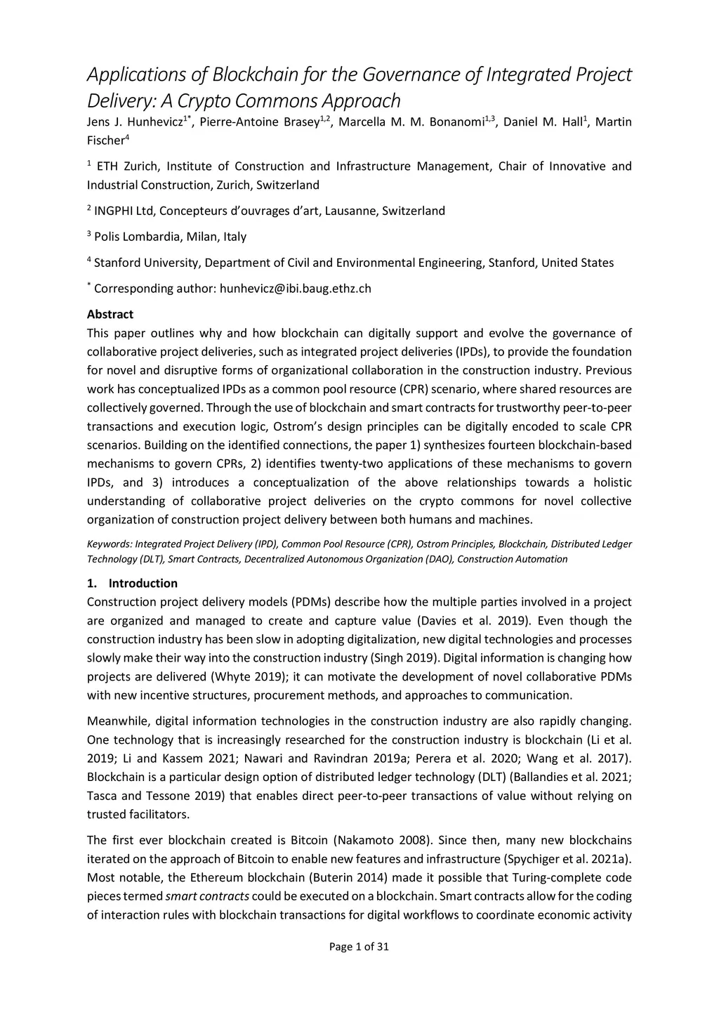 Applications of Blockchain for the Governance of Integrated Project