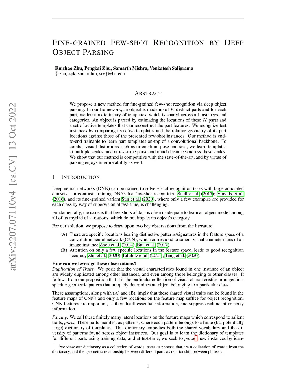 Fine-grained Few-shot Recognition by Deep Object Parsing
