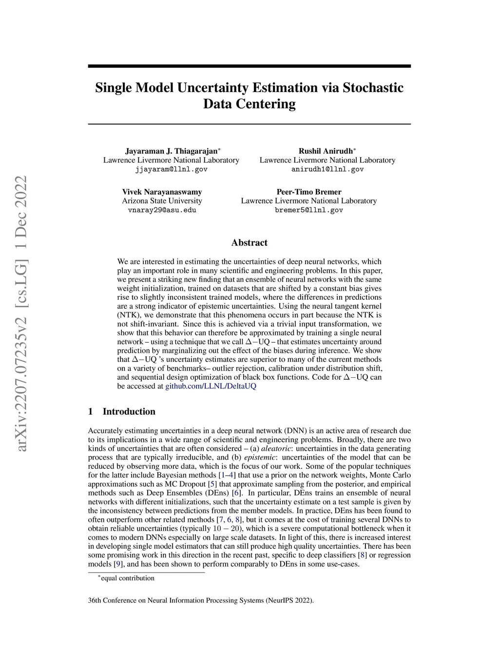 Single Model Uncertainty Estimation via Stochastic Data Centering