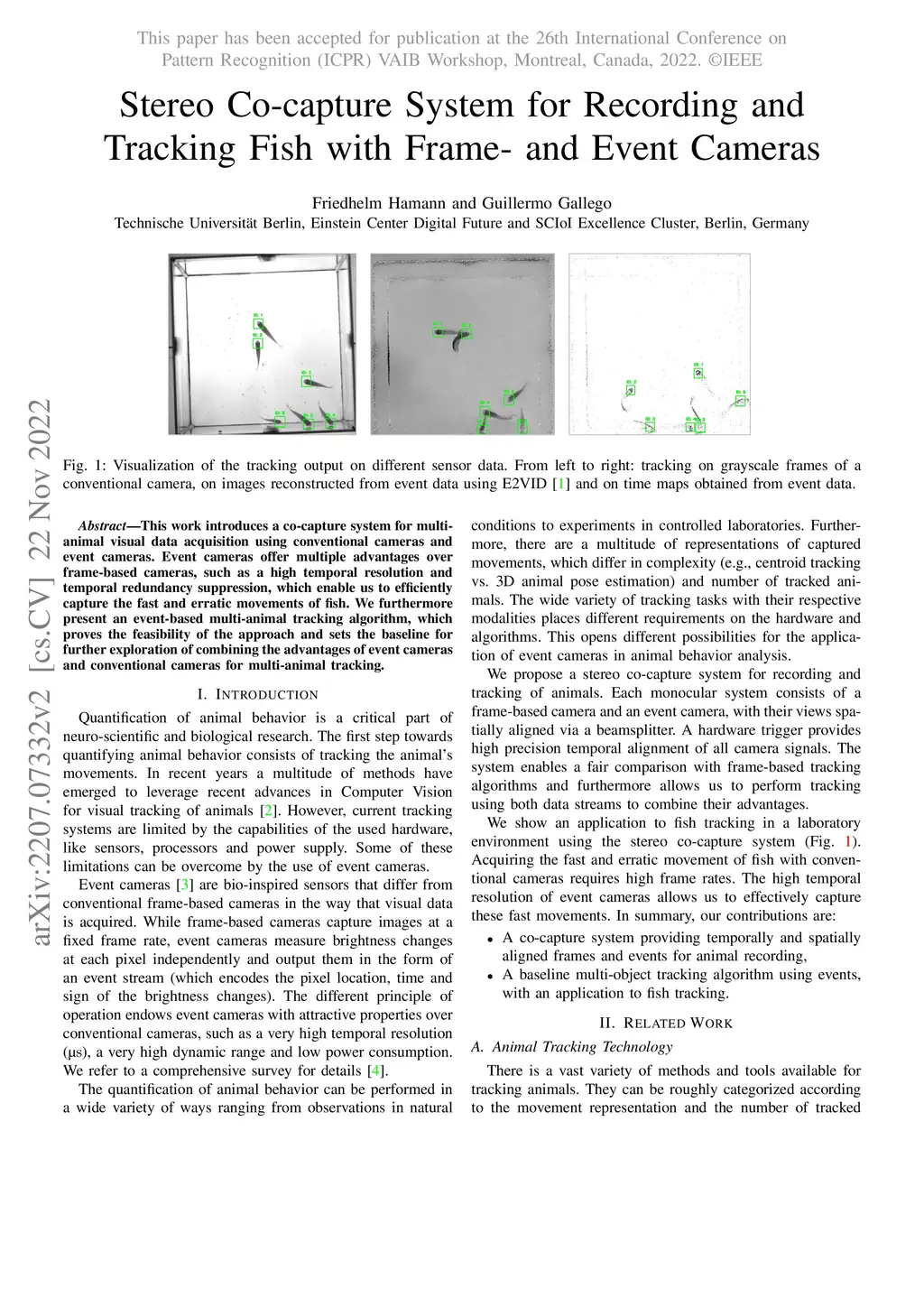 This work introduces a co-capture system for multi-animal visual data acquisition using conventional cameras and event cameras. Event cameras offer multiple advantages over frame-based cameras, such as a high temporal resolution and temporal redundancy suppression, which enable us to efficiently capture the fast and erratic movements of fish. We furthermore present an event-based multi-animal tracking algorithm, which proves the feasibility of the approach and sets the baseline for further exploration of combining the advantages of event cameras and conventional cameras for multi-animal tracking.
