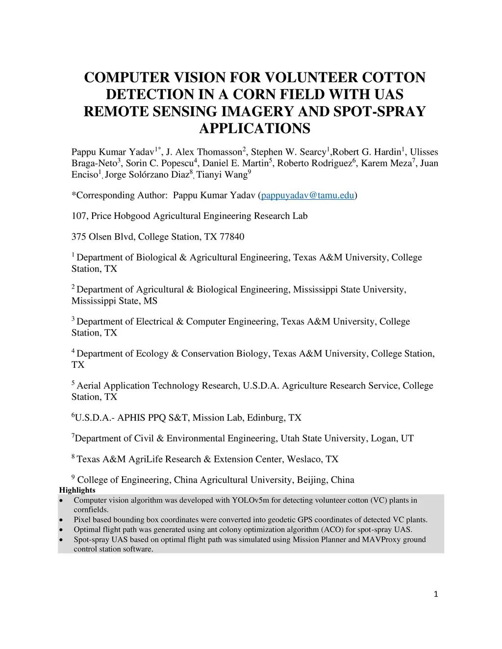 Computer Vision for Volunteer Cotton Detection in a Corn Field with UAS