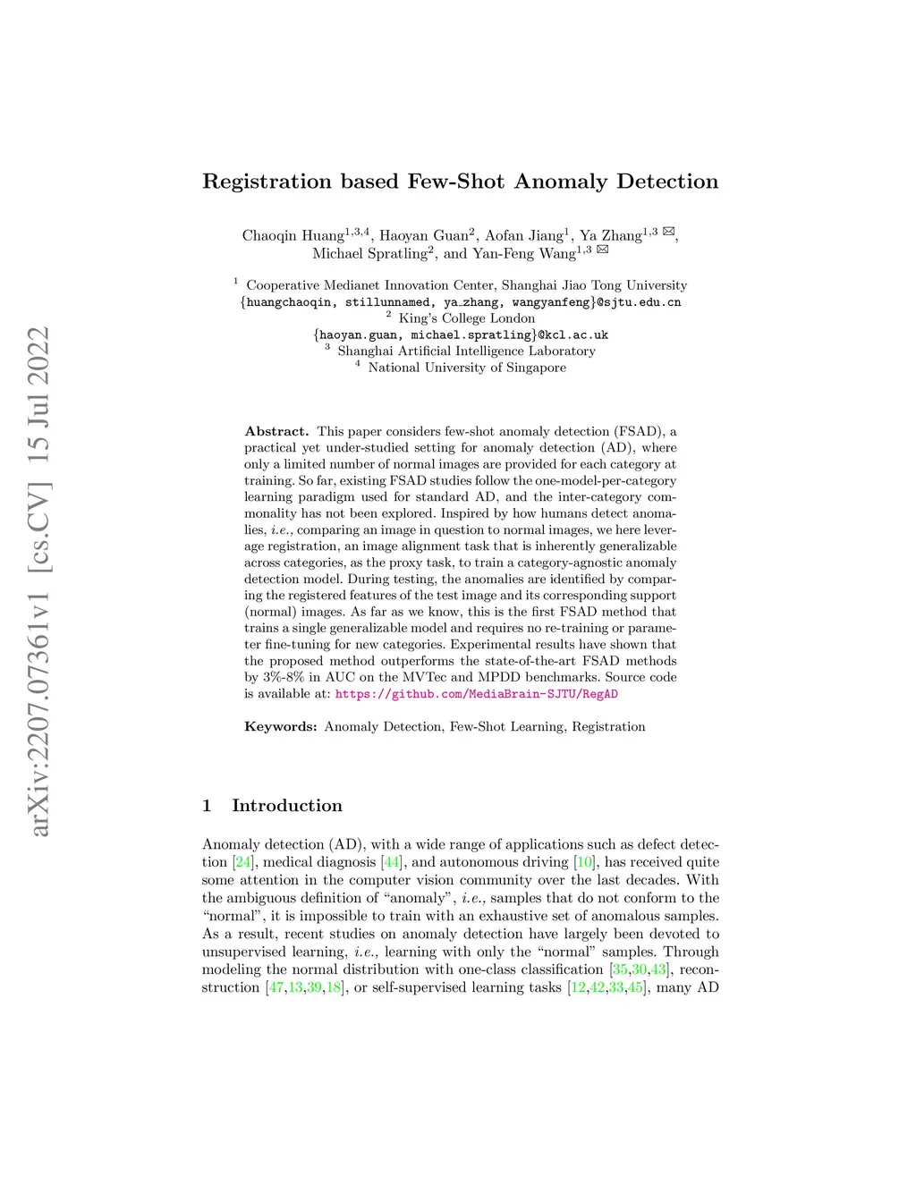 Registration based Few-Shot Anomaly Detection