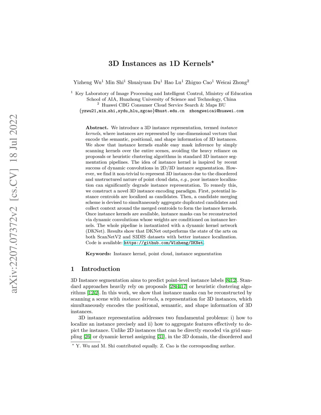 3D Instances as 1D Kernels