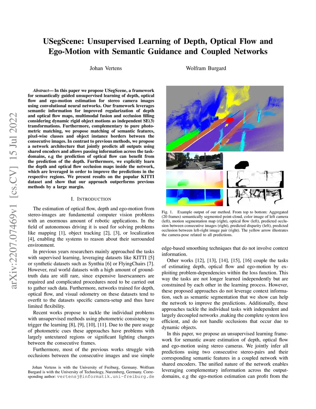 USegScene: Unsupervised Learning of Depth, Optical Flow and Ego-Motion