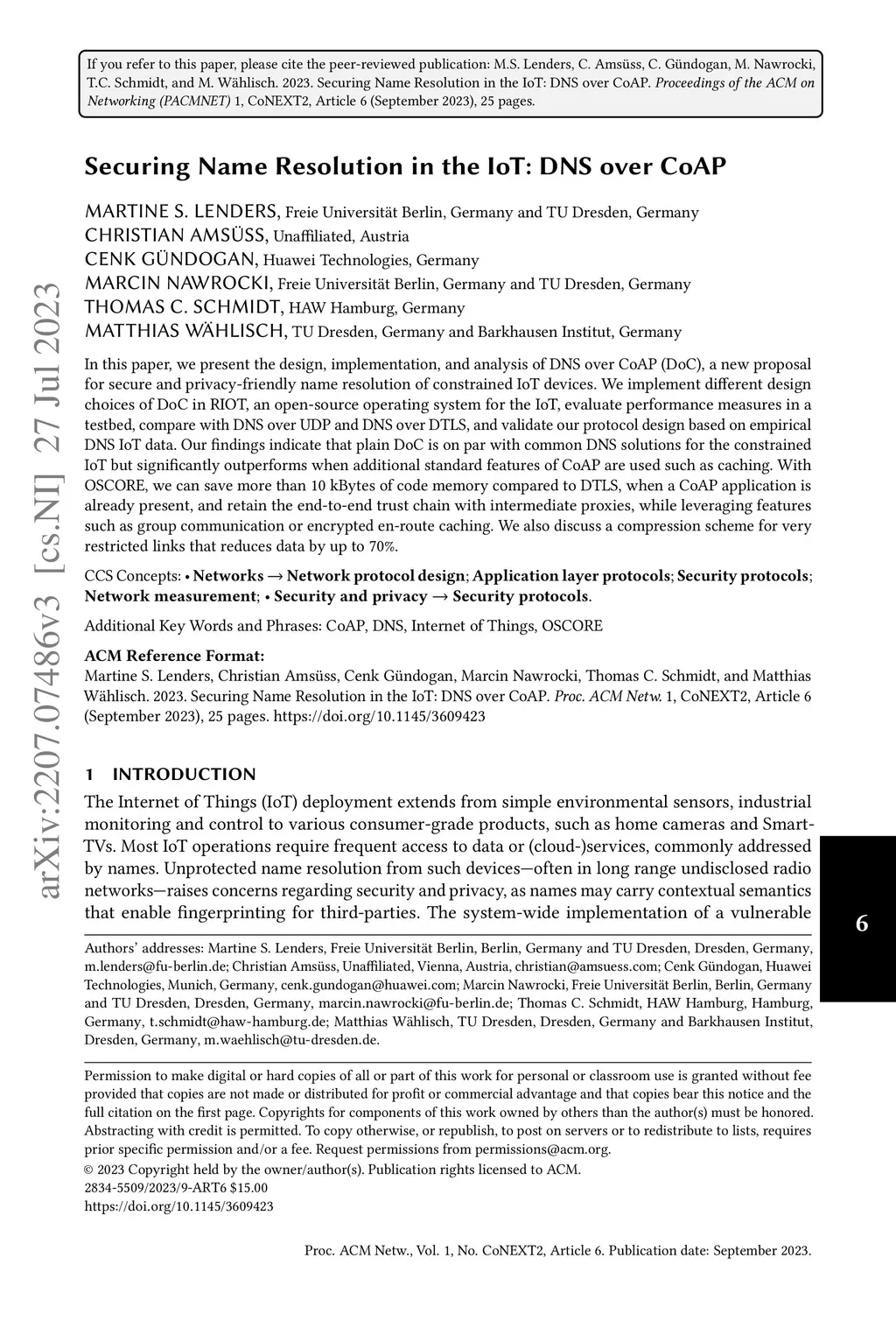 Securing name resolution in the IoT: DNS over CoAP