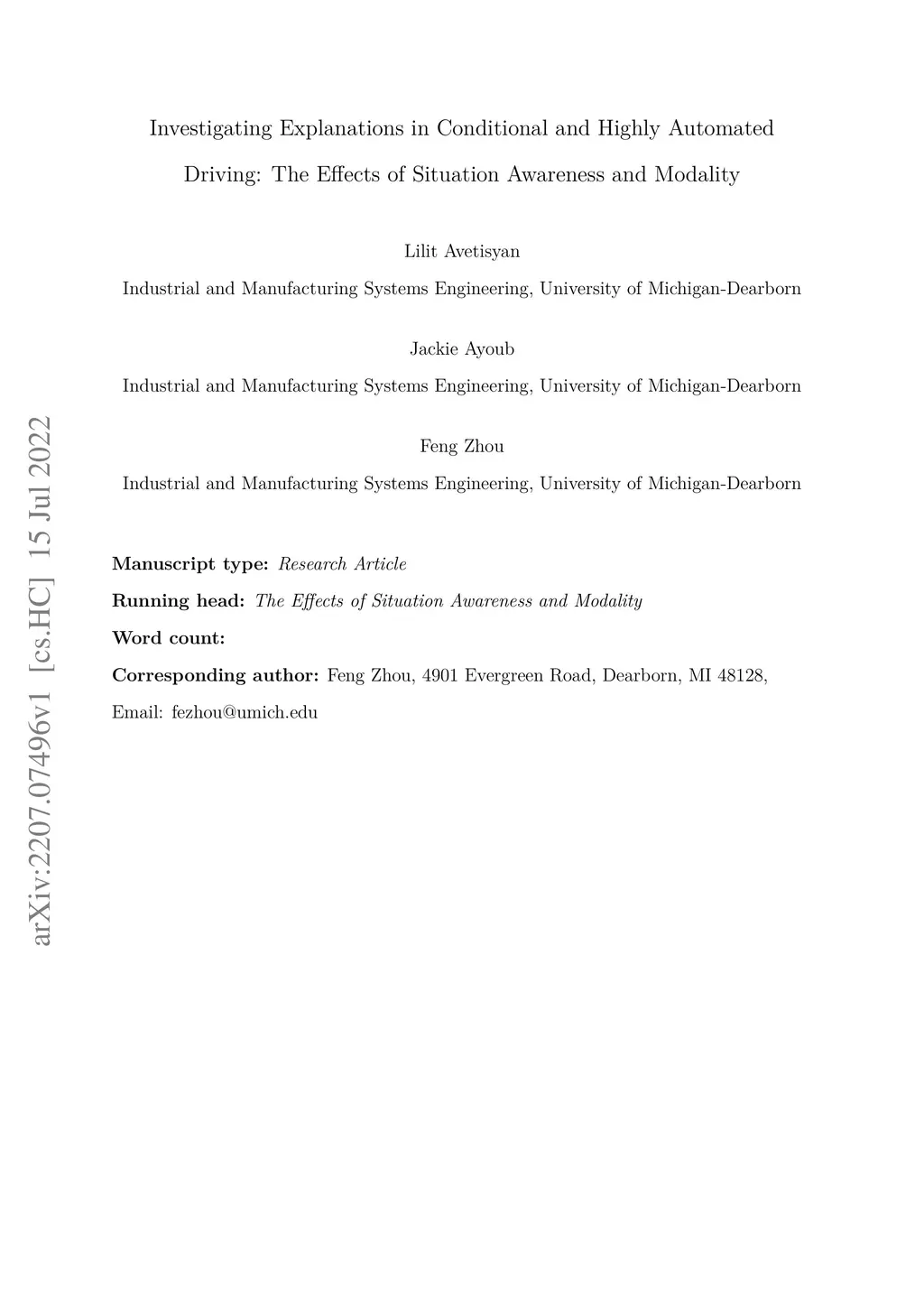 The Effects of Situation Awareness and Modality