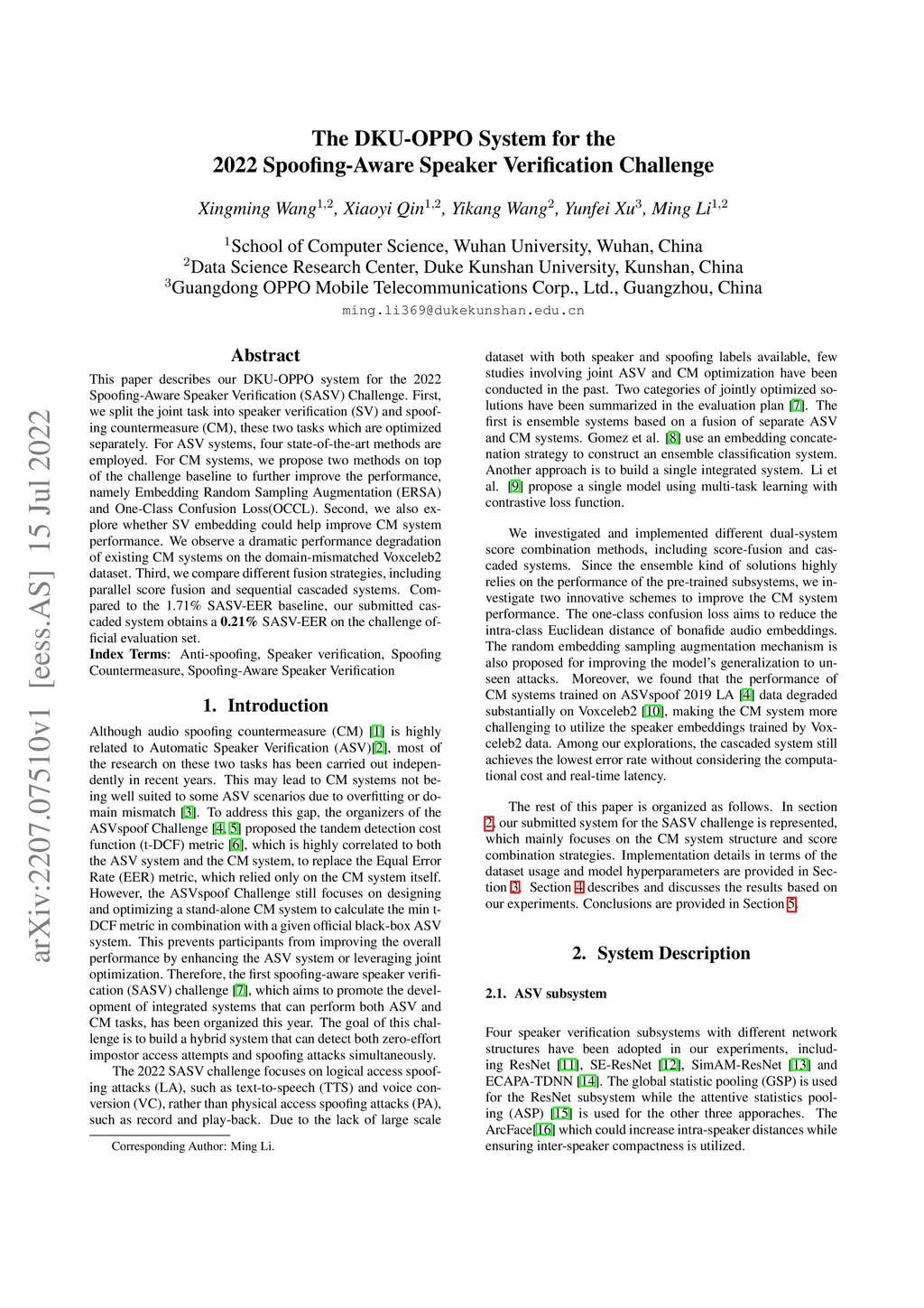 The DKU-OPPO System for the 2022 Spoofing-Aware Speaker Verification