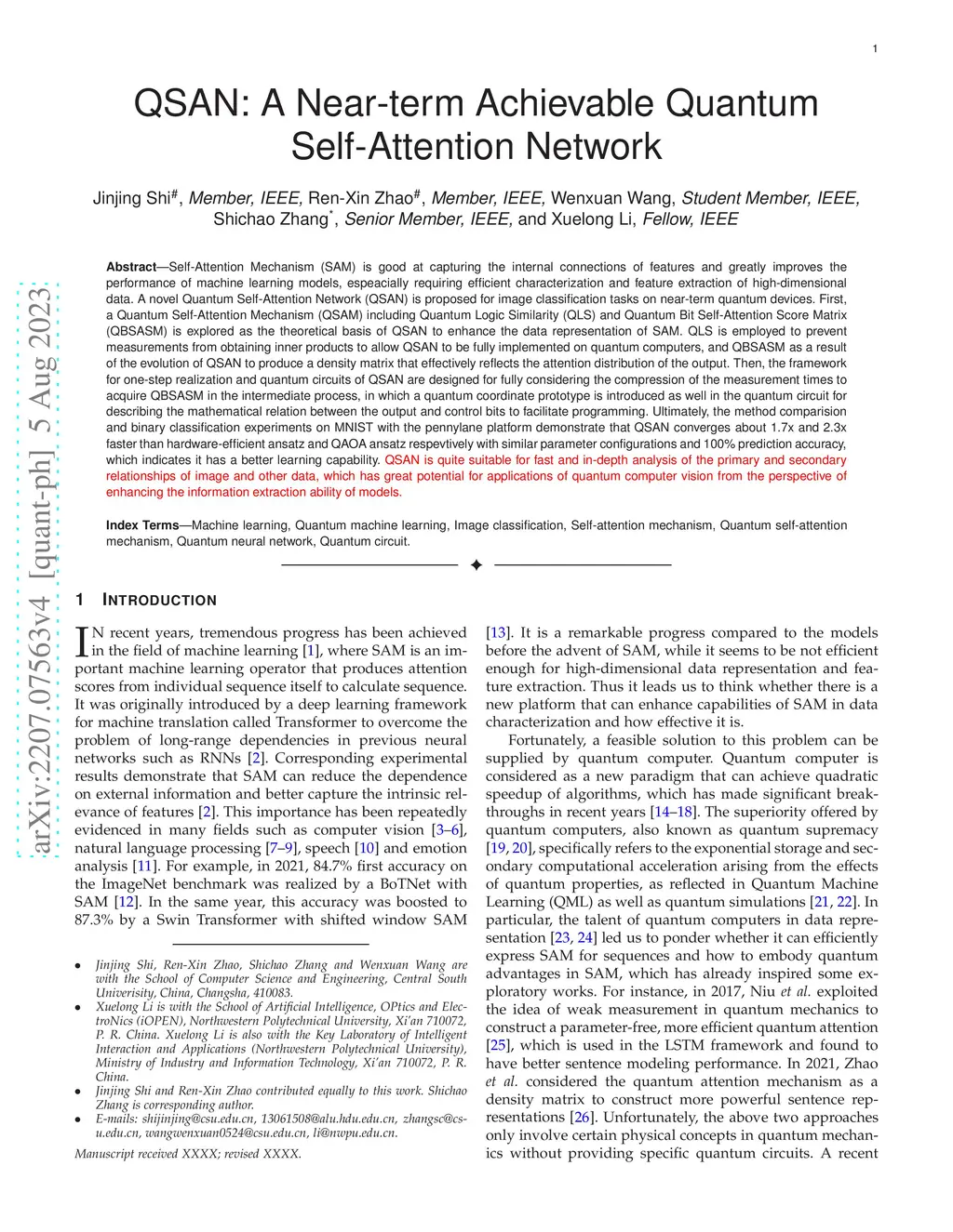 QSAN: A Near-term Achievable Quantum Self-Attention Network