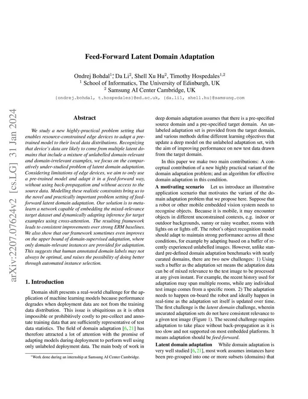 Feed-Forward Latent Domain Adaptation