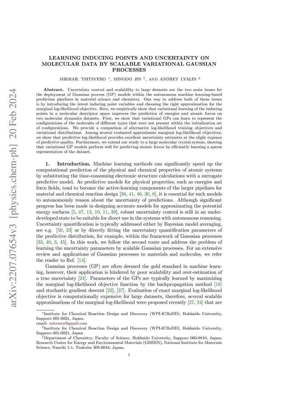 Learning inducing points and uncertainty on molecular data