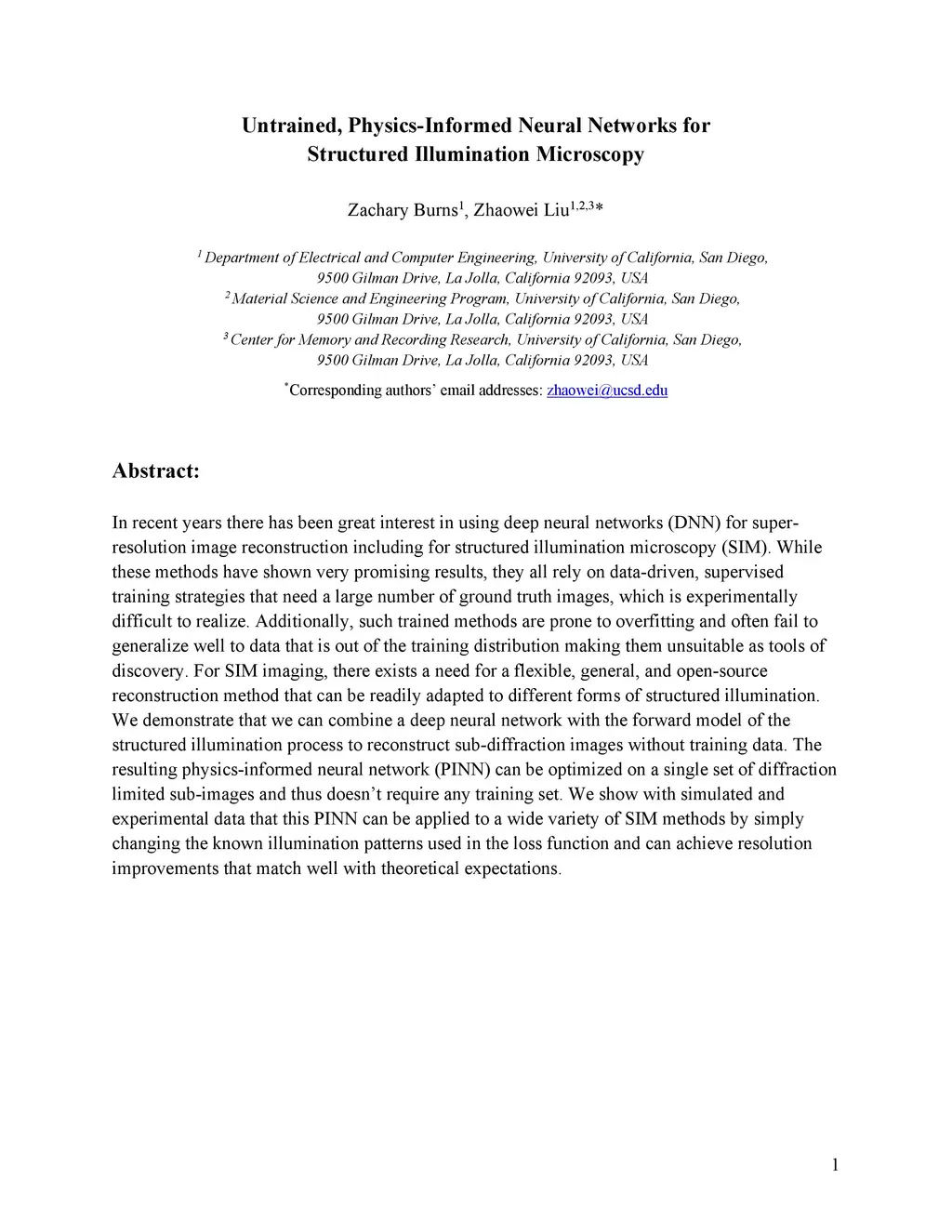Untrained, physics-informed neural networks for structured illumination