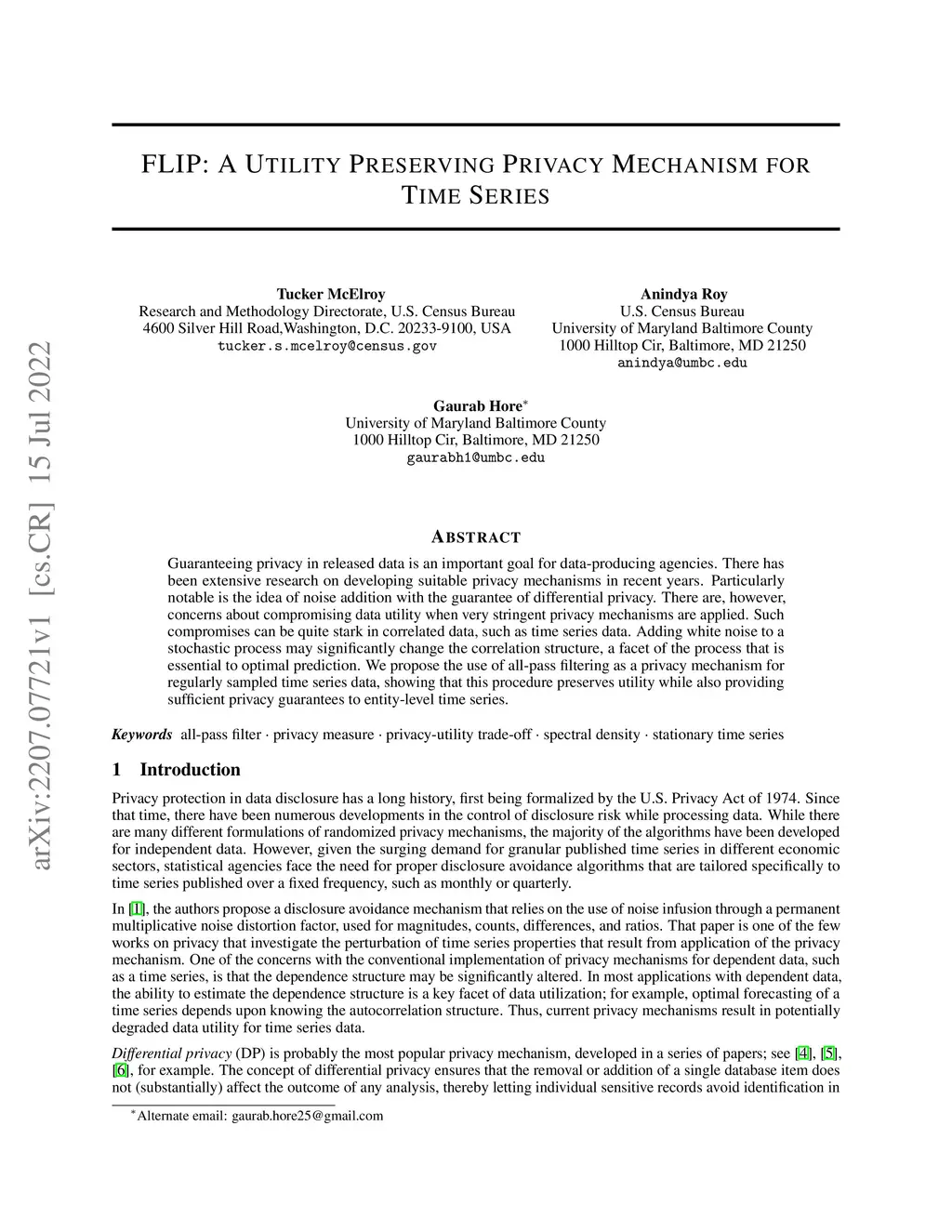 FLIP: A Utility Preserving Privacy Mechanism for Time Series