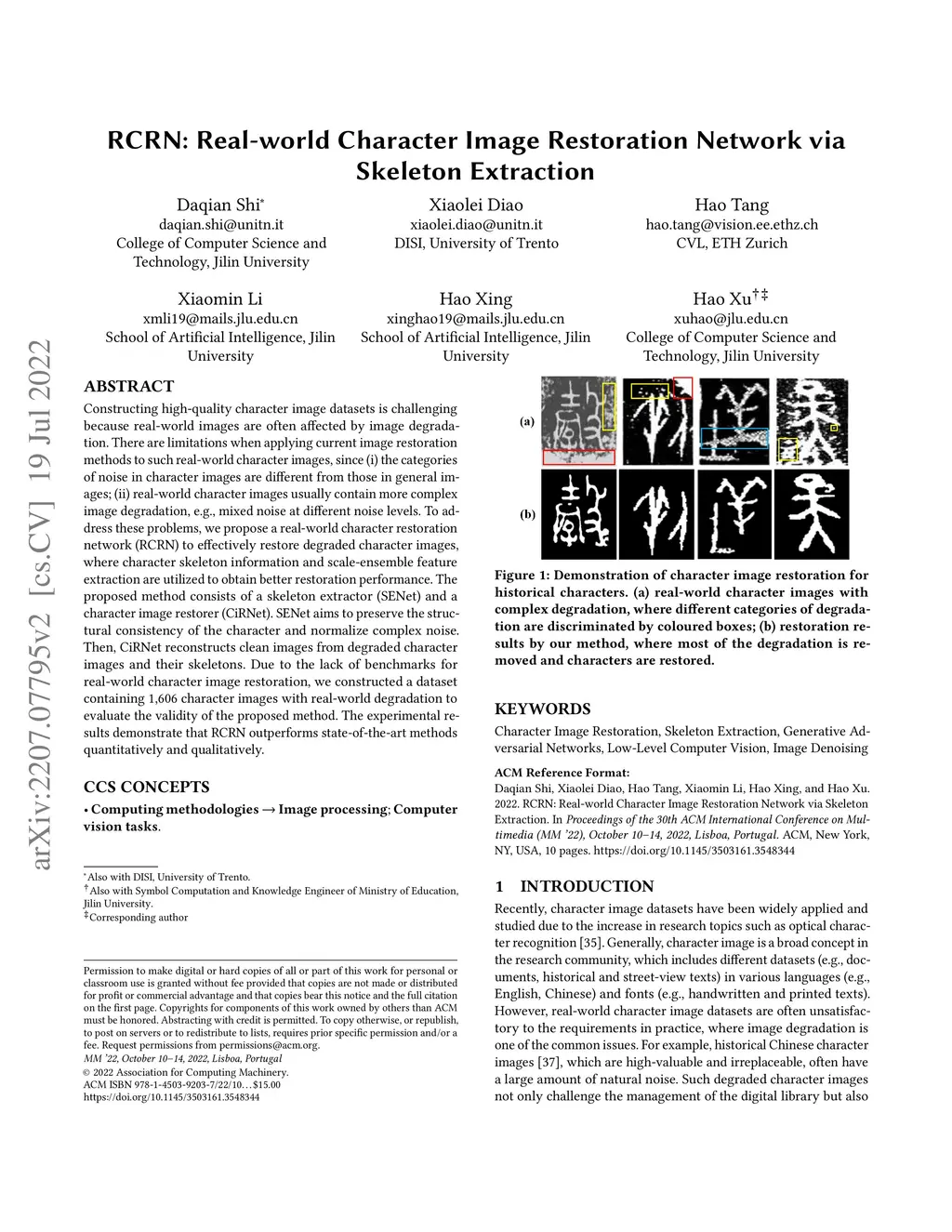 RCRN: Real-world Character Image Restoration Network via Skeleton