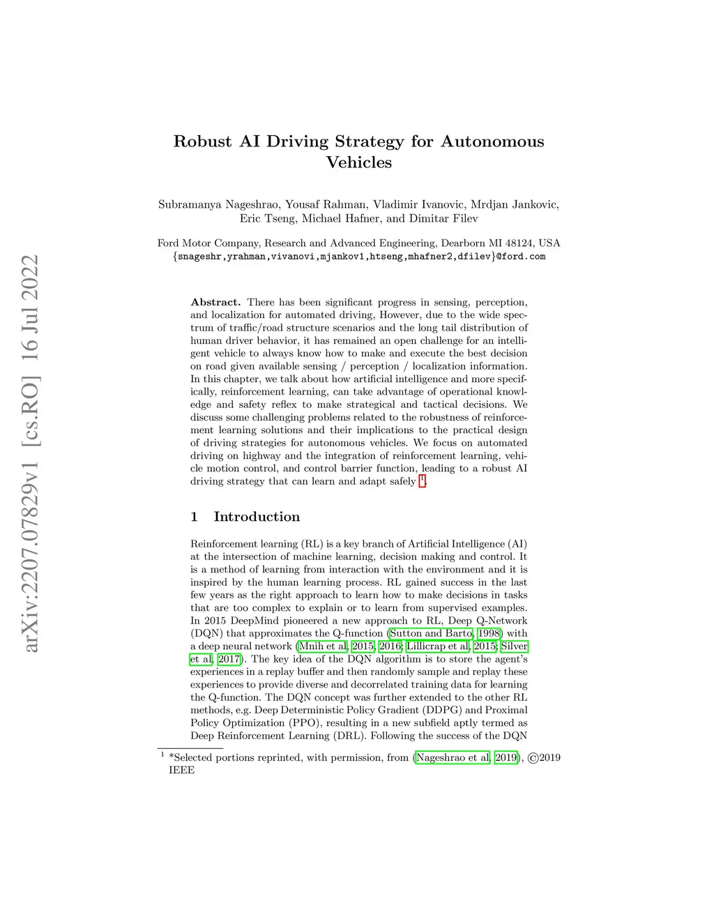 Robust AI Driving Strategy for Autonomous Vehicles