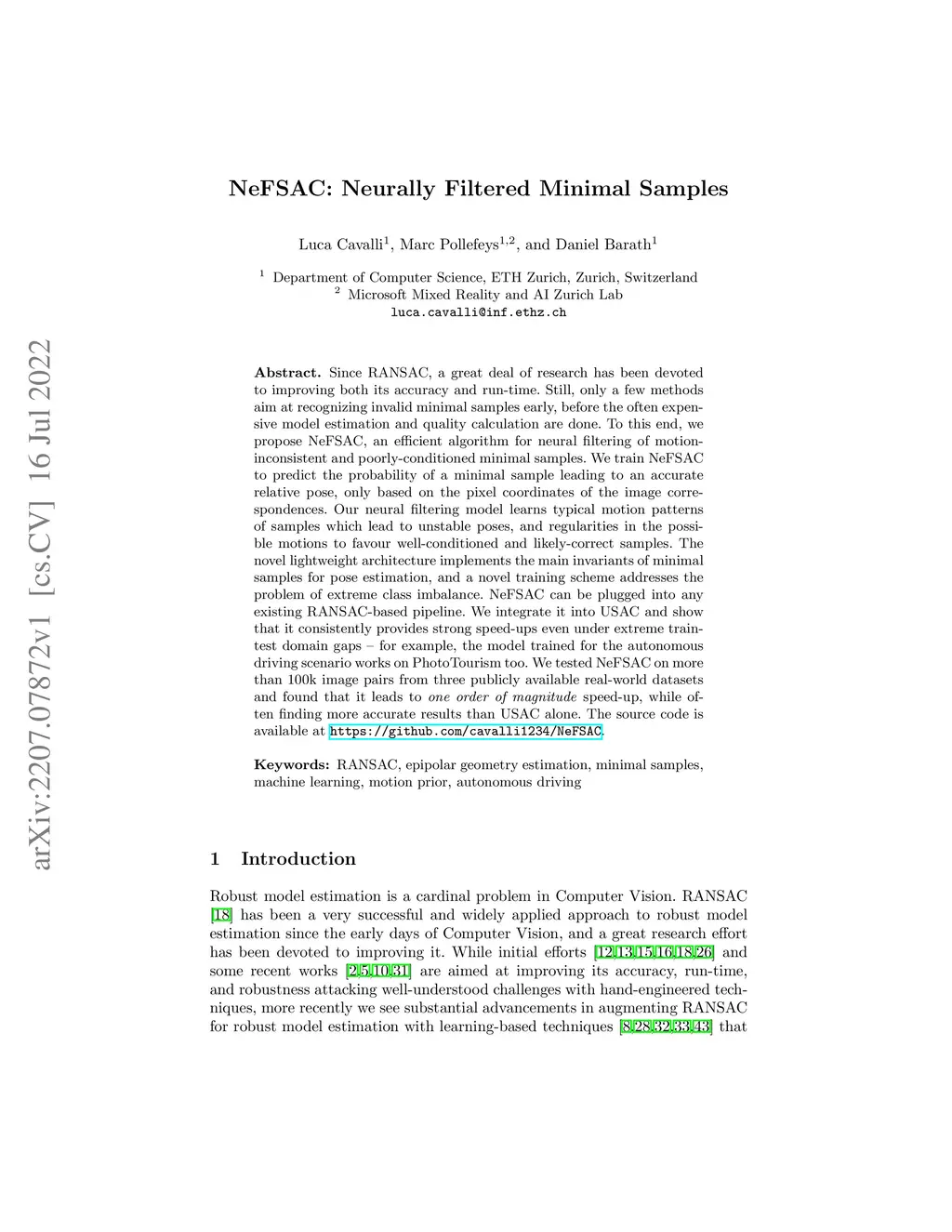 NeFSAC: Neurally Filtered Minimal Samples