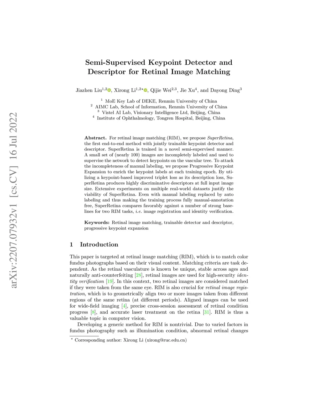 Semi-Supervised Keypoint Detector and Descriptor for Retinal Image
