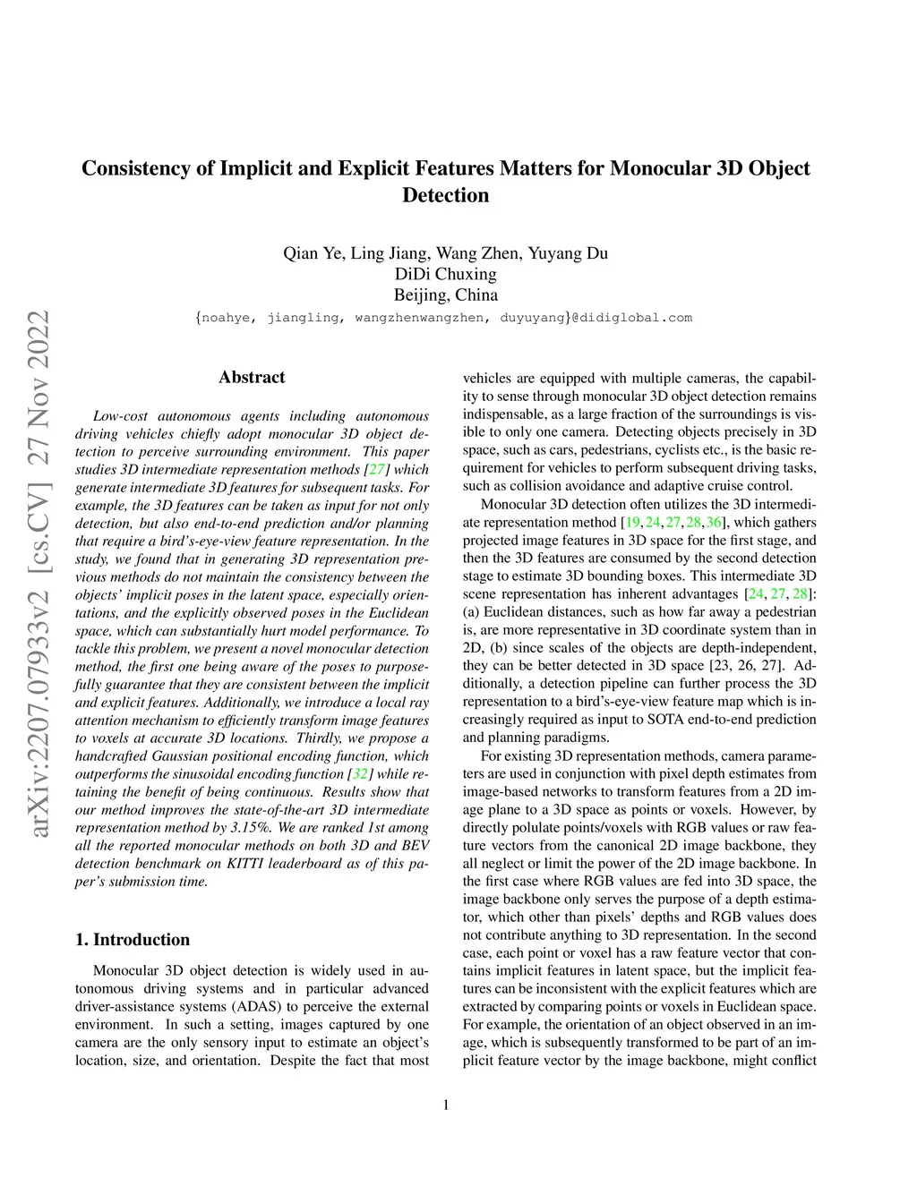 Consistency of Implicit and Explicit Features Matters for Monocular 3D