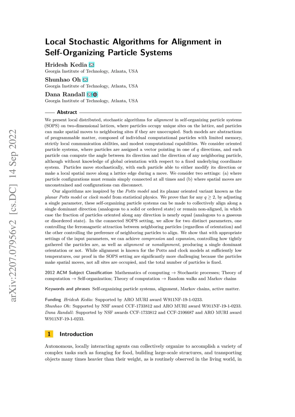 Local Stochastic Algorithms for Alignment in Self-Organizing Particle
