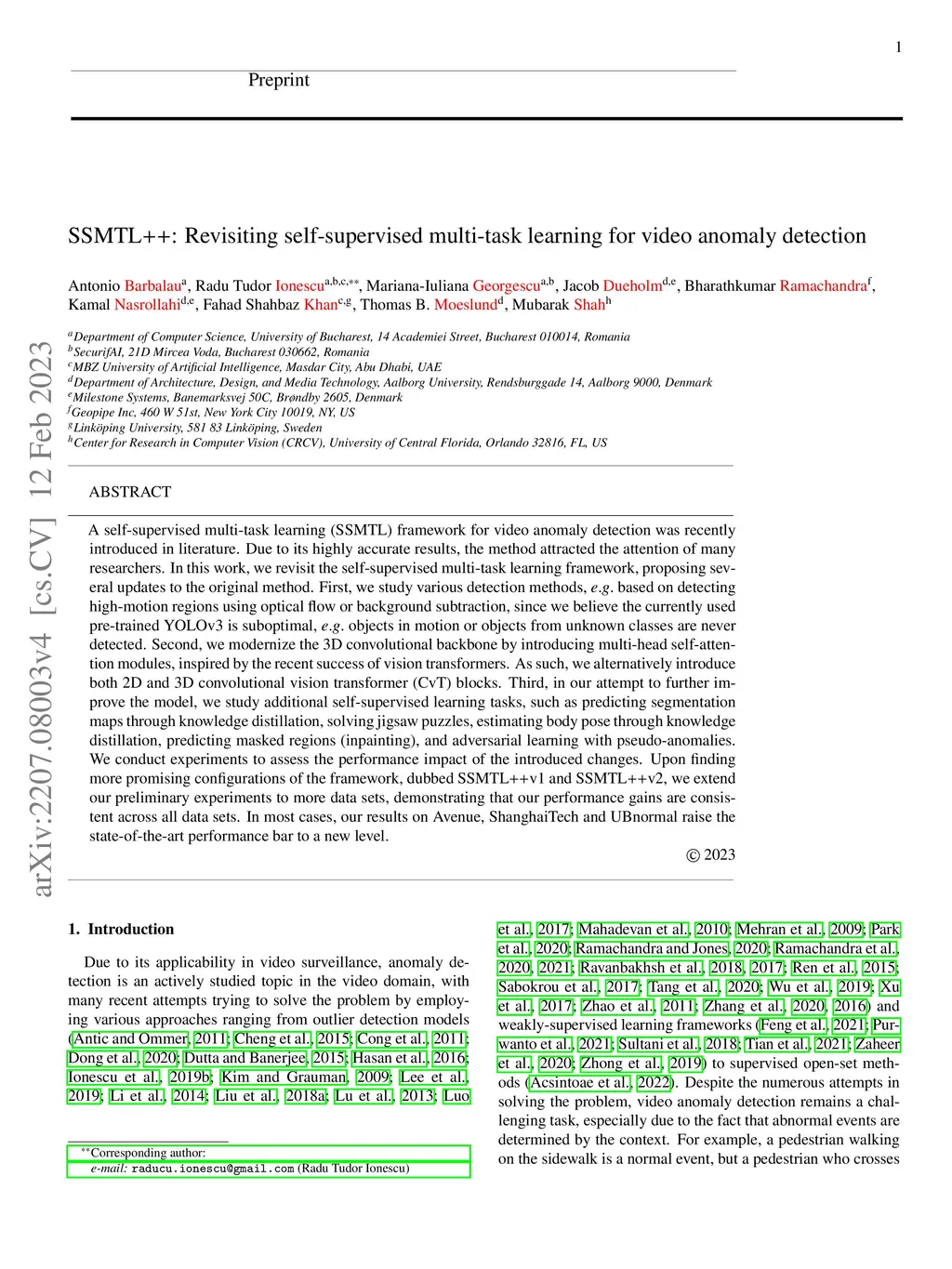 A self-supervised multi-task learning (SSMTL) framework for video anomaly detection was recently introduced in literature. Due to its highly accurate results, the method attracted the attention of many researchers. In this work, we revisit the self-supervised multi-task learning framework, proposing several updates to the original method. First, we study various detection methods, e.g. based on detecting high-motion regions using optical flow or background subtraction, since we believe the currently used pre-trained YOLOv3 is suboptimal, e.g. objects in motion or objects from unknown classes are never detected. Second, we modernize the 3D convolutional backbone by introducing multi-head self-attention modules, inspired by the recent success of vision transformers. As such, we alternatively introduce both 2D and 3D convolutional vision transformer (CvT) blocks. Third, in our attempt to further improve the model, we study additional self-supervised learning tasks, such as predicting segmentation maps through knowledge distillation, solving jigsaw puzzles, estimating body pose through knowledge distillation, predicting masked regions (inpainting), and adversarial learning with pseudo-anomalies. We conduct experiments to assess the performance impact of the introduced changes. Upon finding more promising configurations of the framework, dubbed SSMTL++v1 and SSMTL++v2, we extend our preliminary experiments to more data sets, demonstrating that our performance gains are consistent across all data sets. In most cases, our results on Avenue, ShanghaiTech and UBnormal raise the state-of-the-art performance bar to a new level.
