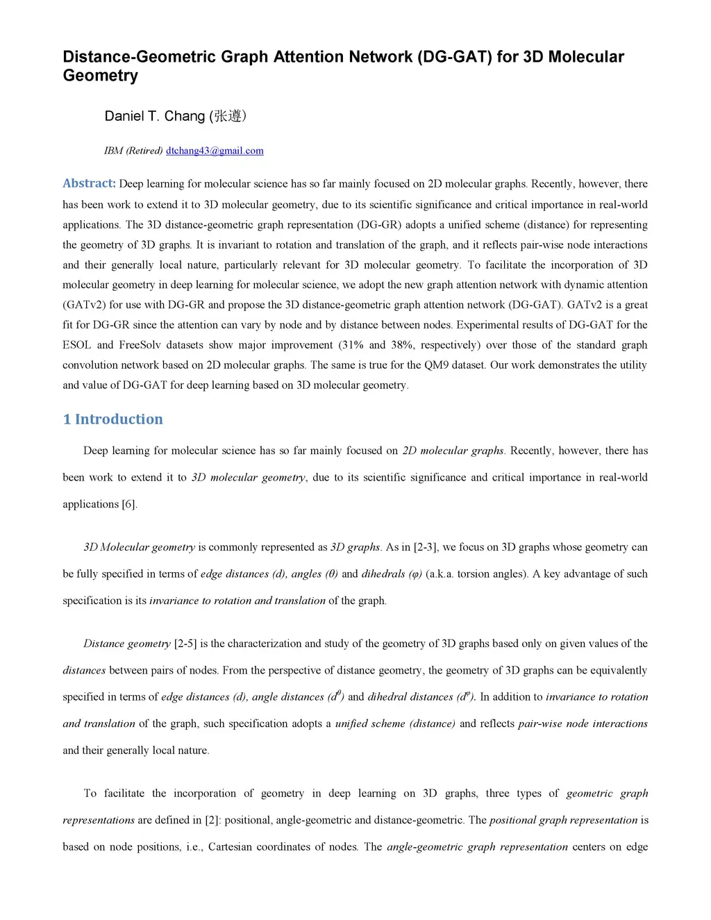Distance-Geometric Graph Attention Network (DG-GAT) for 3D Molecular